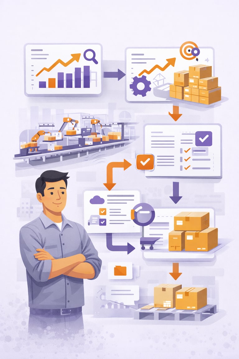 Envolve entender produto, canal de venda, capacidade de entrega e a dinâmica real do mercado B2B industrial.