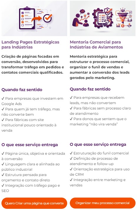 Transformamos buscas no Google em pedidos B2B para indústrias de aviamentos e insumos para confecção.